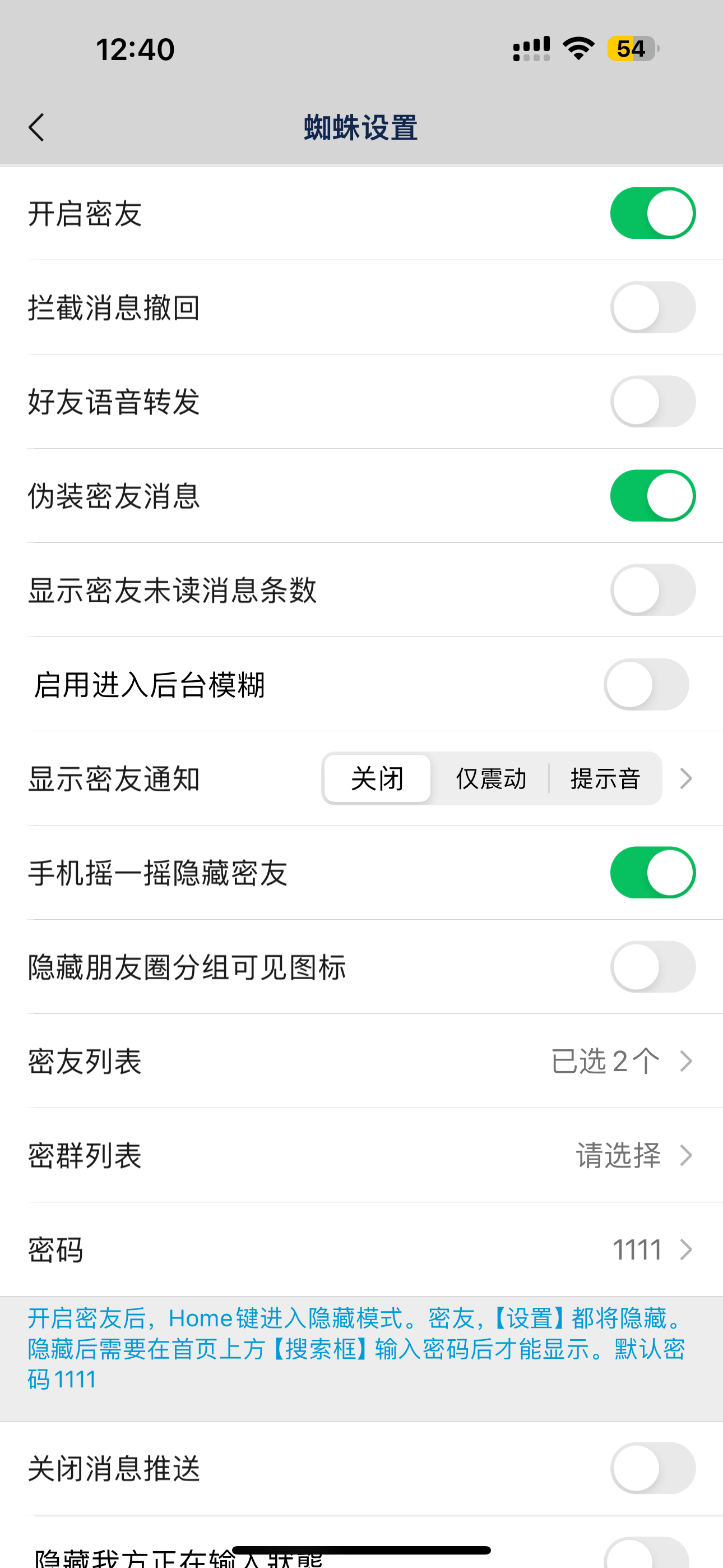 【显示密友未读消息数】开启后隐藏模式下会提醒未读消息数,用于提醒您有未读密友消息。